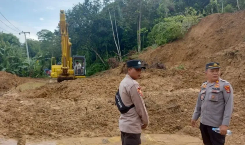 "Sekarang petugas Polsek bersama operator eksavator masih tetap siaga di lokasi untuk antisipasi longsoran susulan, karena dataran tinggi masih banyak menyimpan air," ujar dia.