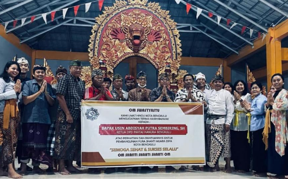 IndonesiaInteraktif.com, Bengkulu -- Usin Abdisyah Putra Sembiring SH selaku Ketua DPD Partai Hanura Bengkulu bersama pengurus Parisada Hindu Dharma Indonesia (PHDI) Provinsi Bengkulu dan Pengurus Kota Bengkulu bersilaturahmi bersama di Banjar Pura Shanti Muara Dipa Kota Bengkulu.