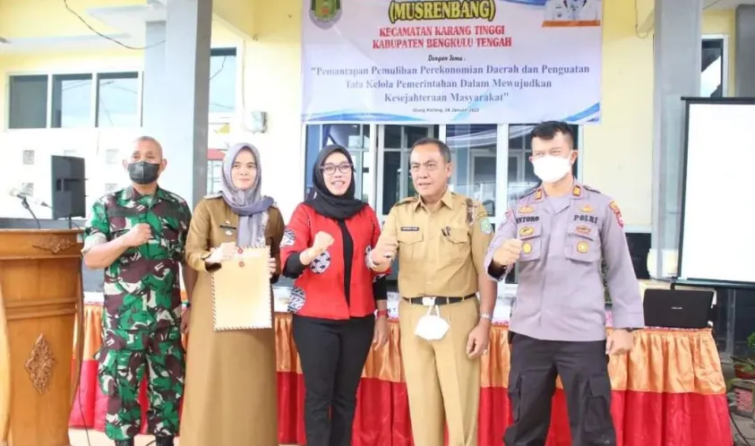Sementara itu Bupati Bengkulu Tengah Dr. H. Ferry Ramli, S.H., M.H., melalui Kepala Bappeda Nirzawan, S.H , M.Si menghadiri acara musrenbang Kecamatan Karang Tinggi, turut hadir Waka II DPRD Bengkulu Tengah Evi Susanti, S.IP., Danramil 407-03/TE Kapten (Inf) Albi Rahman, Kasat Babinmas Polres Bengkulu Tengah Iptu Untoro, S.H., Camat Karang Tinggi Deby Septika, S.STP., M.Si., serta kepala OPD terkait dan Kepala Desa di Kecamatan Karang Tinggi