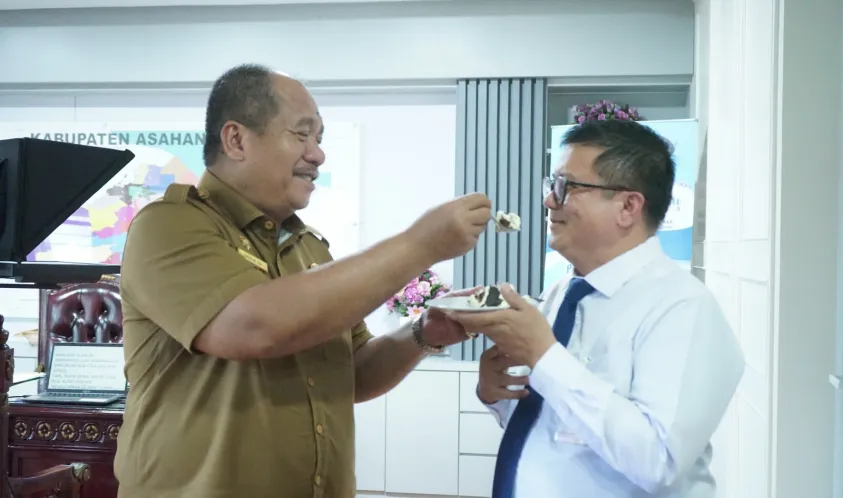 “Kami berkomitmen untuk terus mendukung program-program Pemkab Asahan, terutama dalam memperkuat sektor ekonomi daerah dan memberikan pelayanan terbaik bagi masyarakat,” ujarnya. Kegiatan diakhiri dengan pemotongan kue ulang tahun dan sesi foto bersama sebagai simbol sinergi dan kemitraan yang solid antara Pemerintah Kabupaten Asahan dan Bank Sumut. (Bahrun)
