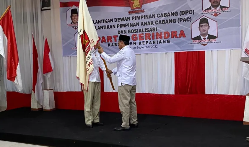 Indonesiainteraktif.com, Kepahiang - Partai Gerindra Provinsi Bengkulu di bawah pimpinan H. Suharto, SE., MBA terus memperkuat eksistensinya di Provinsi Bengkulu. Hari ini Kamis (29/9/2022), Suharto telah melantik Dewan Pimpinan Cabang (DPC) dan Pimpinan Anak Cabang  (PAC) Partai Gerindra Kabupaten Kepahiang.