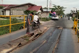 Indonesiainteraktif.com, Rokan Hilir - Jembatan besi penghubung Jalan Bintang' di kepenghuluan Bagan Jawa rusak lagi.
