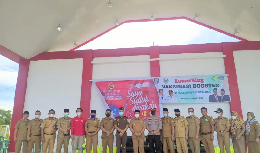 Indonesiainteraktif.com, Seluma - Wakil Bupati Seluma Drs. Gustianto Launching Vaksinasi ke-3 COVID-19 (Booster) untuk Usia 18 Tahun ke atas di Kabupaten Seluma Tahun 2022 bertempat di Taman Kota Simpang Enam Seluma, Selasa (25/01/2022).
