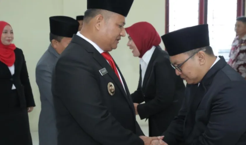 Indonesiainteraktif.com, Asahan -- Wakil Bupati Asahan, Rianto, SH., MAP melantik dan mengambil sumpah 2 pejabat di lingkungan Dinas Kependudukan dan Pencatatan Sipil (Disdukcapil) Kabupaten Asahan, Jumat (16/05/2025) di aula dinas setempat.
